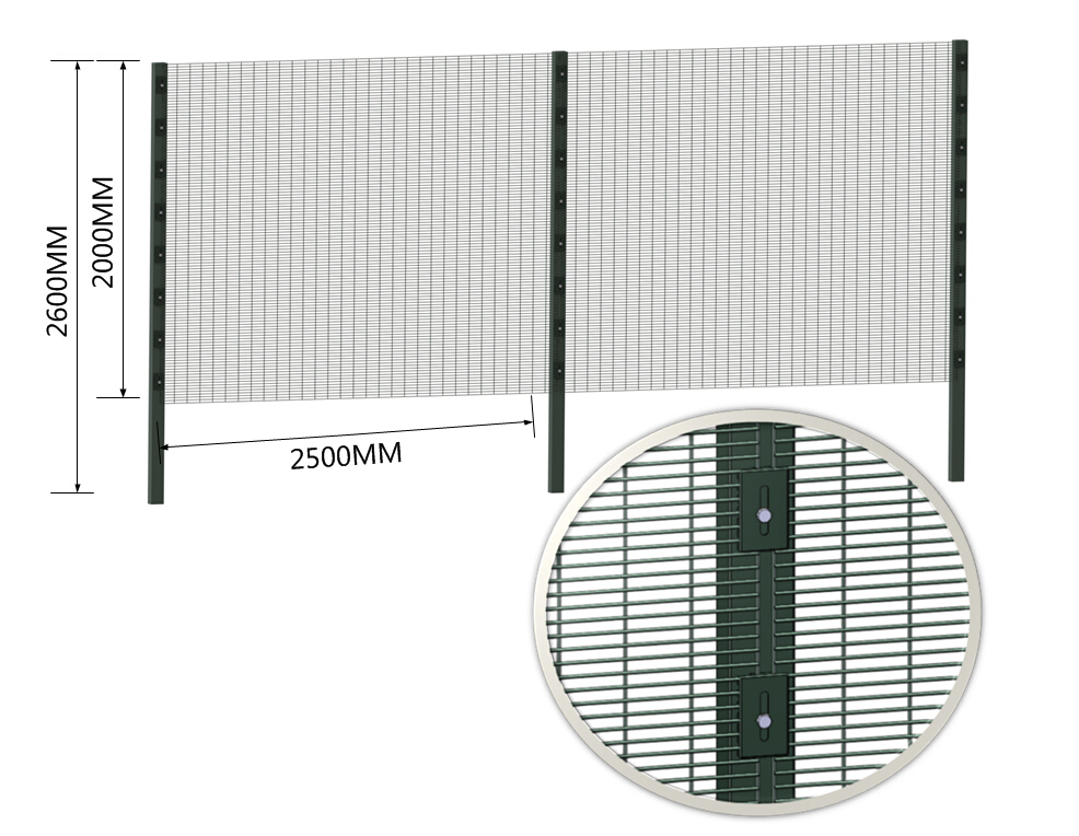 Mesh panel using high-quality low carbon steel wire and welded by a computer-controlled machine.Post using the international standard tube as material (60×60×2.0mm, 75×75×3.0mm,80×80×3.0mm,100×100×3.0mm or Dia 60×2.0,89×3.0mm )